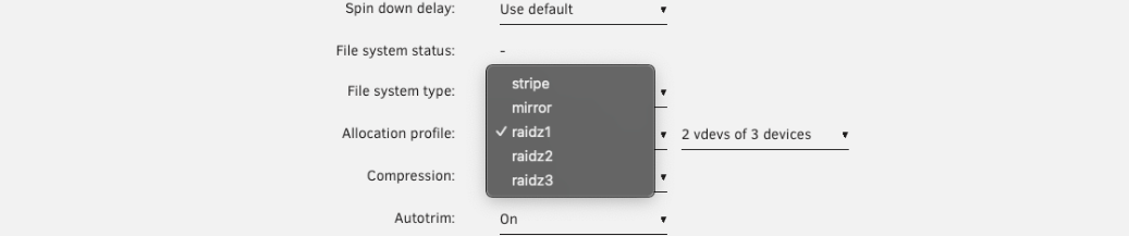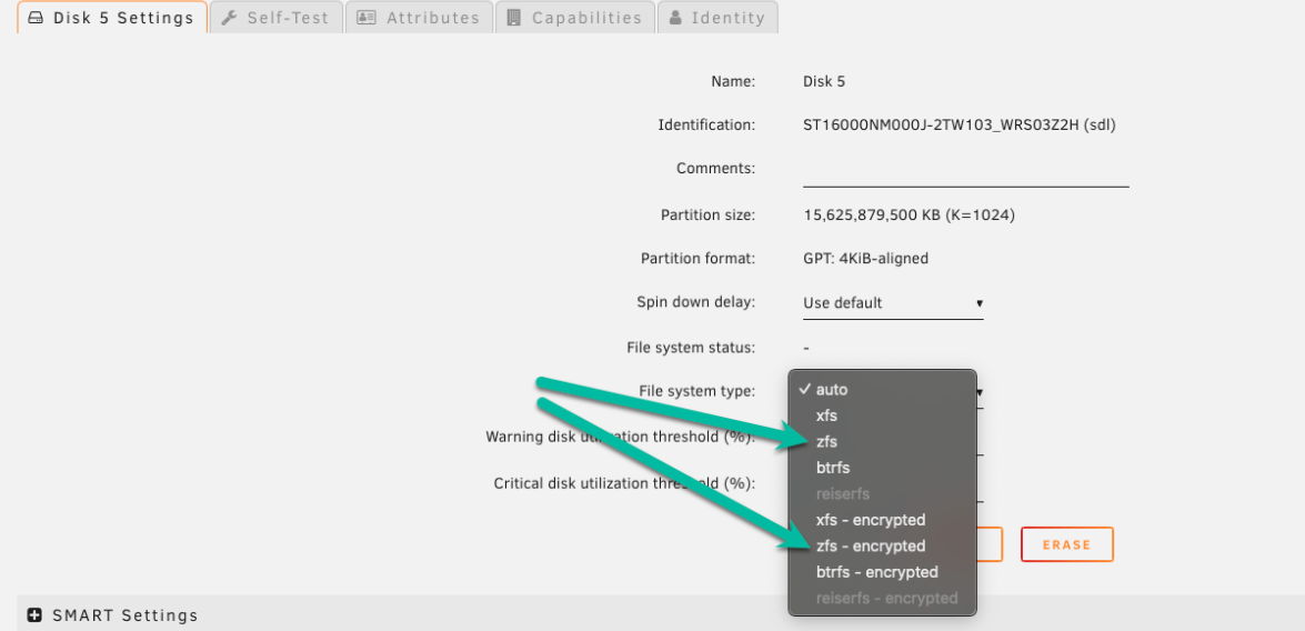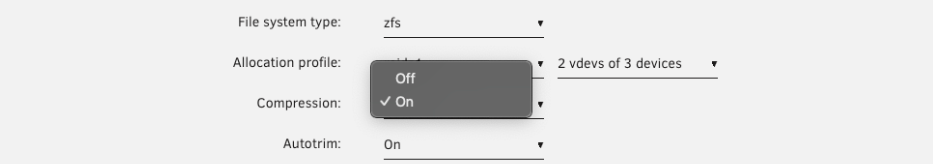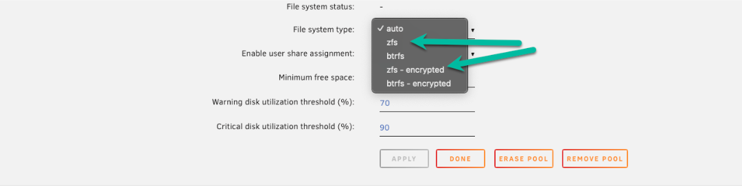 1. Bajo Sistema de archivos, elija zfs o zfs-encrypted.